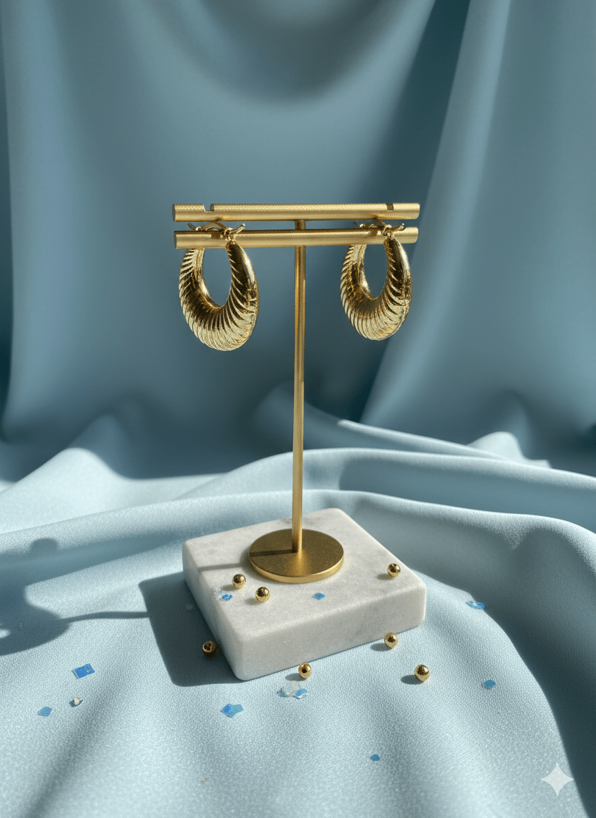 Aros Perlas | Dorado | Acanalado